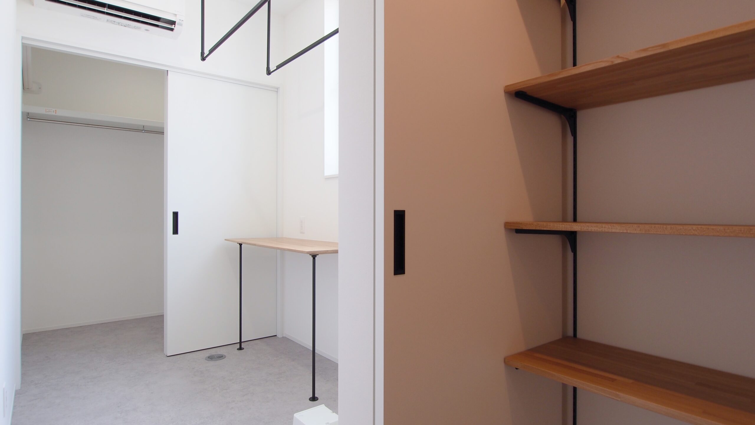 ランドリールームとファミリークロークもあり、洗って干して仕舞うまで最短動線で行えるように計画しました。